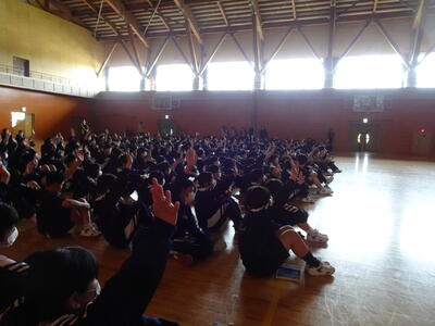 5月13日(月)15時30分より、本校体育館で県中地区陸上大会選手激励会が行われました。