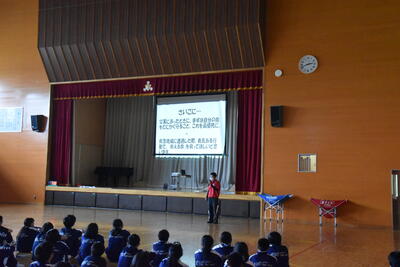 まず最優先すべきは「自分の命を守る」こと。その上で、中学生としてできる支援、できる救助を考えてほしいという話がありました。