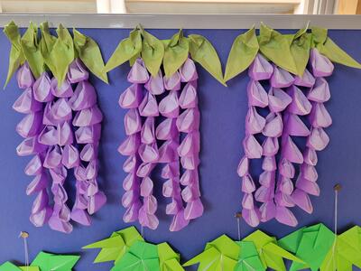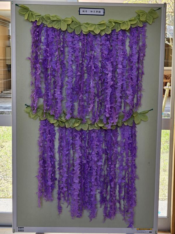 この藤の花は、和久学級の生徒の皆さんが協力して丁寧に作成したものです。