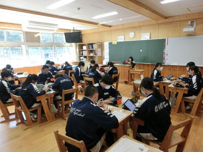 5月10日(金)6校時、全学級で生徒会総会の議案書審議が行われました。