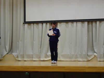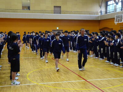 生徒代表激励の言葉では代表生徒から「皆さんの怯むことなく奮い立って練習に取り組む姿には、いつも勇気付けられています。日々の努力を信じてスタートラインに立ち、心に覚悟を決めて頑張ってきてください。」と力強いエールが送られました。