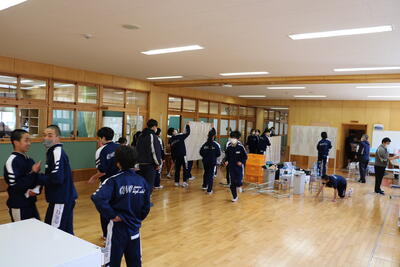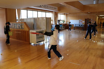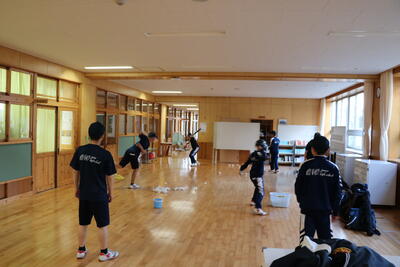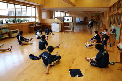 本日の部活動を安全に配慮し、外の部活動は室内練習に切り替えました。
