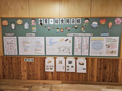 また、給食センター側の廊下には食育に関する掲示コーナーが設置されており、生徒や先生が足を止めて見たり読んだりしている姿をよく見ました。