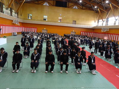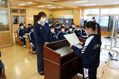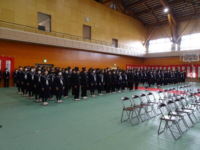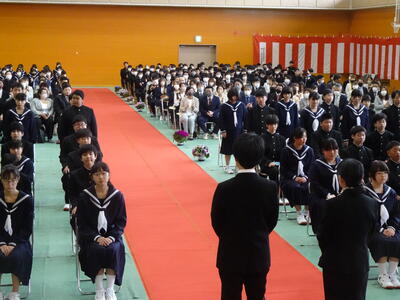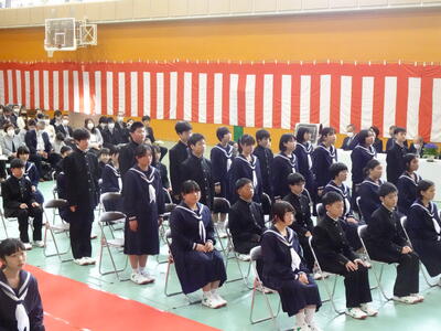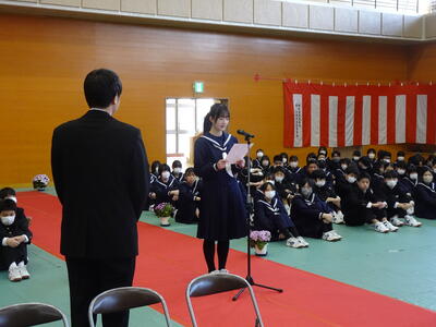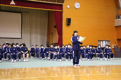 また、各学級の代表生徒から、1年間の反省と来年度の抱負の発表があり、1年間を振り返って学習や部活動の反省や、4月から先輩となる意気込みを堂々と述べていました。