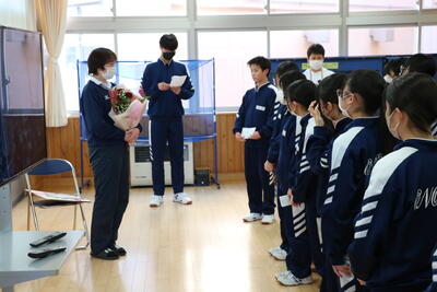 また、最後には、今年度末でご退職される学年主任の先生へ、2年生からのサプライズの卒業式。