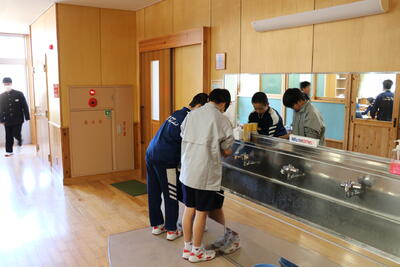 明日からの修学旅行に向けて準備のため、給食を食べて下校となりました。