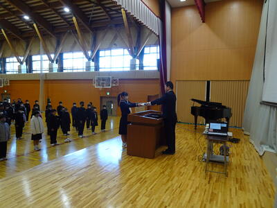 修了式では、1、2年生の代表生徒に修了証書を授与しまいた。