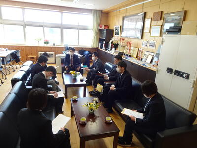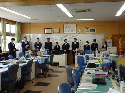 緊張した面持ちで校長室から職員室へ移動、在籍中の教職員の前で校長が紹介をし、一人一人から挨拶をいただきました。