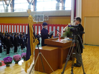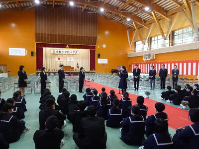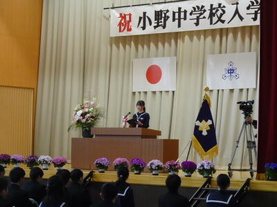 また、新入生の代表生徒からは「仲間と常に切磋琢磨し合い、小野中学校の新たな1ページを作っていけるよう、何事にも全力で取り組むことを誓います。」と力強い誓いのことばがあり、頼もしさを感じました。