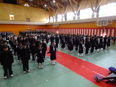 着任式では、新しい先生方との初対面ということで、新2、3年生も興味深々でした。