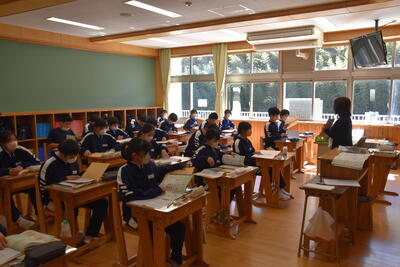 1年生の教室をのぞいてみると、学級担任以外の先生による教科の授業が始まっていました。