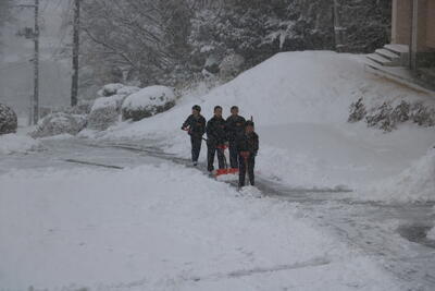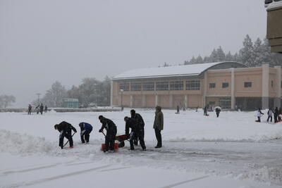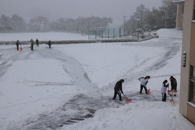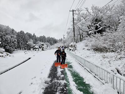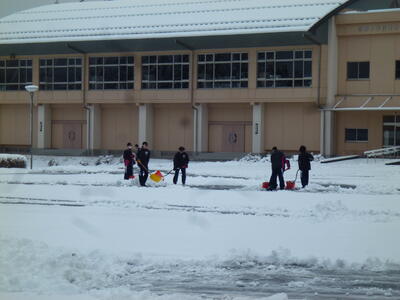 今朝も、早く登校した生徒たちが、雪が降りしきる中、除雪作業に協力してくれました。