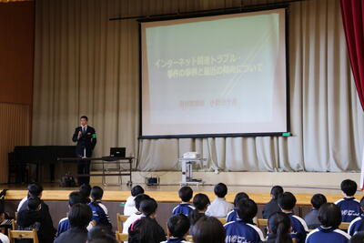 この教室は、インターネットを利用した性犯罪被害や、個人情報の流出、SNSでの誹謗中傷によるいじめなどなど、様々なトラブルの事例をもとに、インターネット等の安全な利用について考えることを目的に行いました。