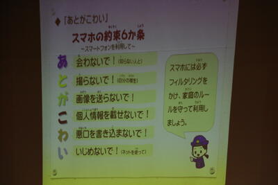 また、スマートフォン等を利用するにあたり、以下の「スマホの約束6か条」についてもお話がありました。