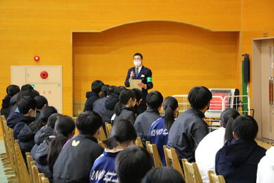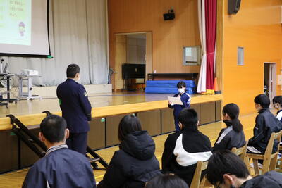 講師に田村警察署小野分庁舎の警察官をお招きし、講話をしていいただきました。