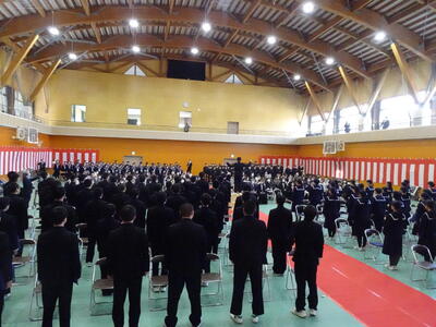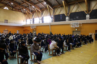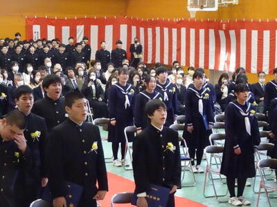 在校生「旅立つ君のへ」、卒業生の「道」ともに体育館中に響き渡る歌声に、会場のいたるところからすすり声が聞こえてきました。