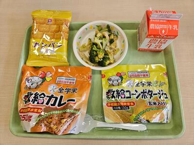 本校では、先日3月8日(金)に、「非常食体験献立」が提供されました。