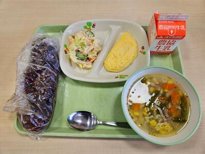 その他にも「オムレツ」や「ポテトサラダ」、「ABCスープ」もあり、3年生も笑顔で最後の給食を満喫していました。