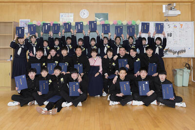 85名の卒業生にとって、中学校3年間、そして義務教育9年間の最後の登校日です。