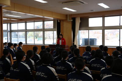 講話後には、代表の生徒から「使い方を一歩間違えれば、生活などに悪い影響を与えてしまう。今日の話をこれからの生活に役立てたい」とのお礼の言葉がありました。