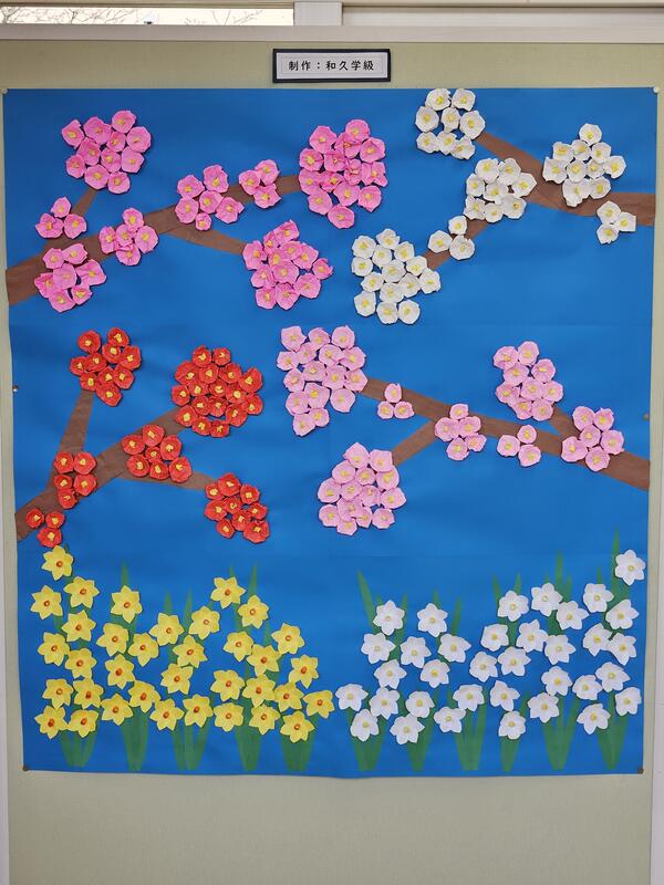実は、この梅の花は、毎月恒例となっている和久学級の生徒たちによる昇降口の掲示物です。