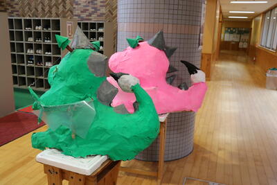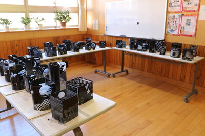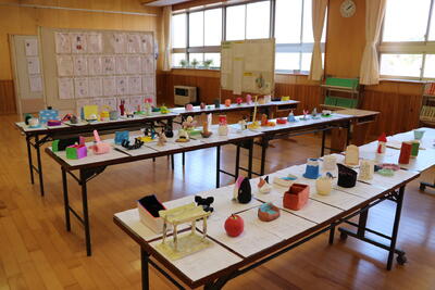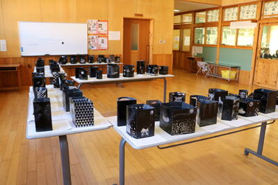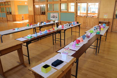(写真は、2、3年生の作品です。1年生の作品は、現在準備中です。)