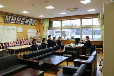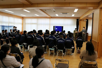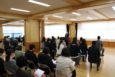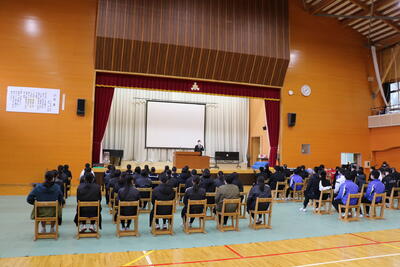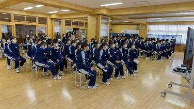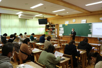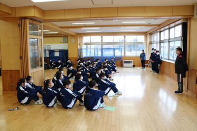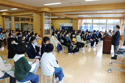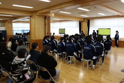 4月に入学予定の6年生に、小学校と中学校の違いを説明し、中学校生活のスタートに向けた心構えや見通しを持たせることを目的に行われました。