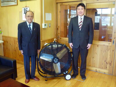 小野ロータリークラブの「未来ある子供達への支援及び学校、地域への支援プロジェクト」として、本日2月16日(金)、小野ロータリークラブの会長様より大型扇風機一式を寄贈いただきました。