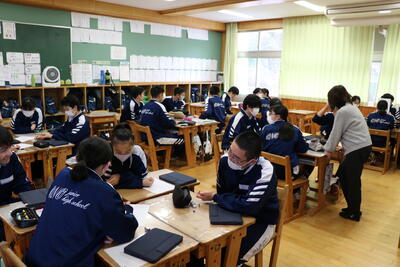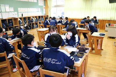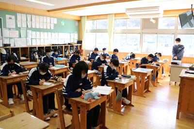 すでに私立高校等への進学を決めている生徒もいますが、3年生は3月の県立高校の前期選抜に向けて、2年生は4月の修学旅行に向けて、着々と準備を進めています。