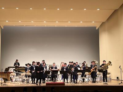 小野中学校の発表は、三春中学校の合同による演奏で、はじめはそれぞれの中学校で単独演奏を行い、3曲は両校合わせて29名による合同演奏を行いました。