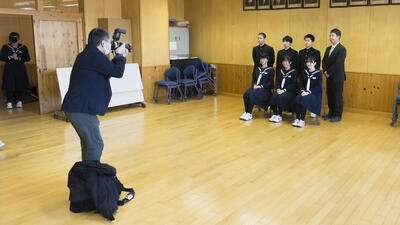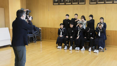 2月1日(木)の放課後に、3年生の「卒業アルバム」に掲載する生徒会委員会の写真撮影が行われました。