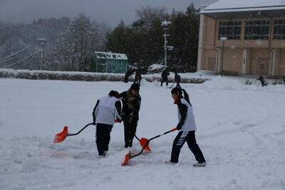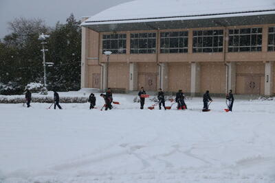 すると、朝練に来ていた生徒を中心に多くの生徒たちが、雪の中、外に出てきて雪かきをしてくれました。
