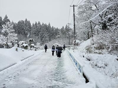 生徒たちも、雪が残っていたり、凍っていたりする道をおそるおそる慎重に登校していました。