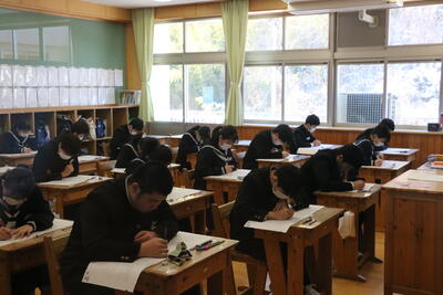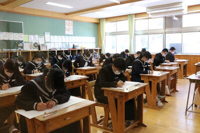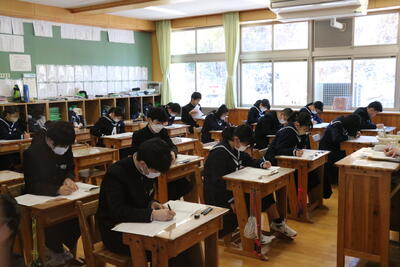 いよいよ日後に迫った県立高校前期選抜の受験に向けて、これまでの学習の成果を試すテストです。