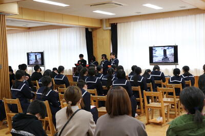 2年生は、同じく総合的な学習の時間で行った「職場体験」の報告発表を、