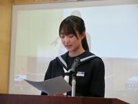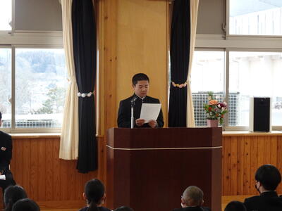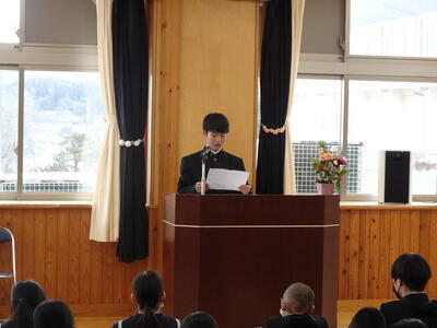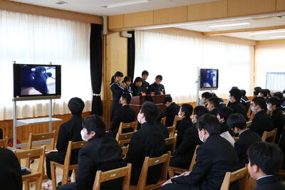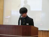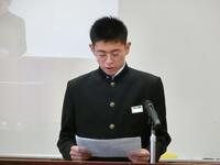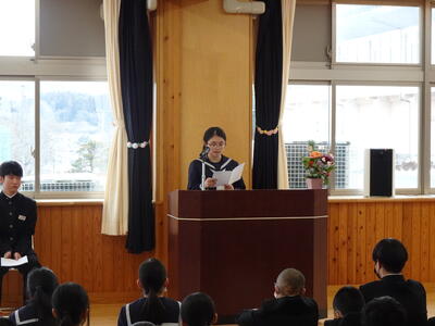 1年生は、学習面や部活動で特に頑張ったことについて、2年生は、生徒会と英語弁論全国大会を通して成長できたこと、3年生は、部活動での東北大会や全国大会での経験や志望校合格に向けた取組について発表がありました。