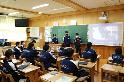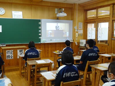 6時間目には、インフルエンザ拡大防止のため、オンラインによる終業式が行われました。