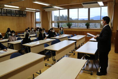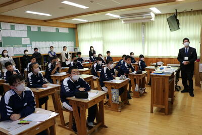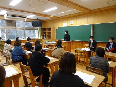 また、授業参観後には学年懇談会が行われ、学年担当教師から2学期の学習面や生活面での様子や冬休みの過ごし方、3年生では高校受験などの進路について説明がありました。
