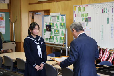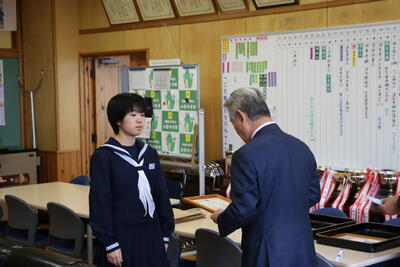 2年生の女子生徒と、合わせて3年生の保護者の方にも感謝状が贈られました。