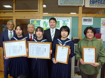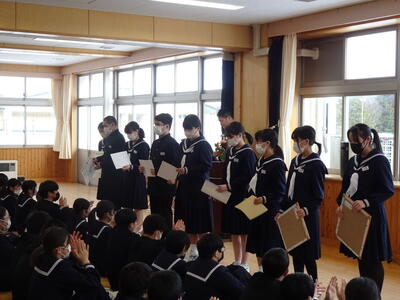 式の最後には、2学期最後や冬休みにあった大会や作品展等の表彰がありました。