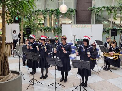 今日はクリスマスですが、12月23日(土)に郡山市のうすい百貨店において、「うすいクリスマスコンサート」が行われ、本校の吹奏楽部も演奏を披露しました。