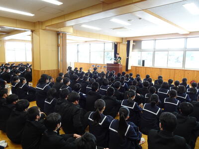 校長からは、「3学期は本年度の締めくくりの学期、『行く1月・逃げる2月・去る3月』ともいわれるように、あっという間と感じてしまう学期でもあります。短いながらも新年の目標や決意を忘れず、充実した学校生活となるよう頑張っていきましょう。」というお話がありました。