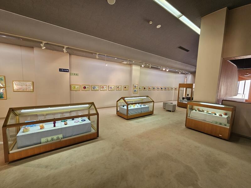 小・中学校の児童生徒の絵画や造形などの作品が多数展示されています。