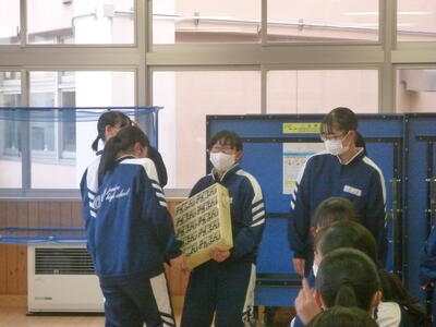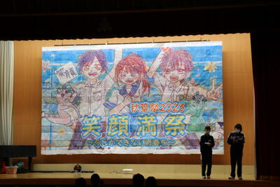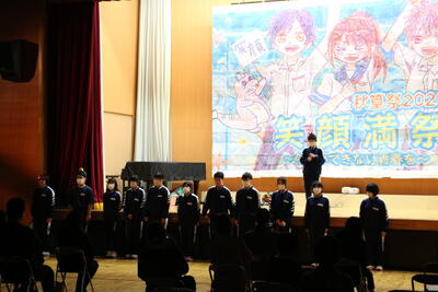最初に、文化祭の「ビッグアート」の披露と、デザインが採用された美術部員から、デザインに込めた思いについて発表がありました。
