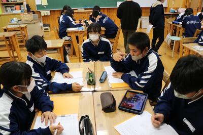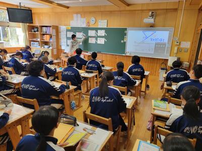 動画を見たり、小野町の財政状況の説明などがあったりと、生徒たちは真剣に取り組んでいました。