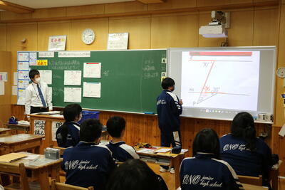 研究授業は、2年3組で数学の「平行と合同」の授業が行われました。