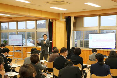 県内各地より小・中学校の先生方が集まり、さらに、文部科学省より学力調査官にお越しいただき、教員の研修が行われます。