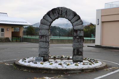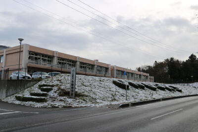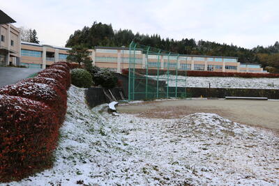 校庭や「夢へのアーチ」下の花壇、そして国道349号から見える「ONO・JHS」も真っ白に。