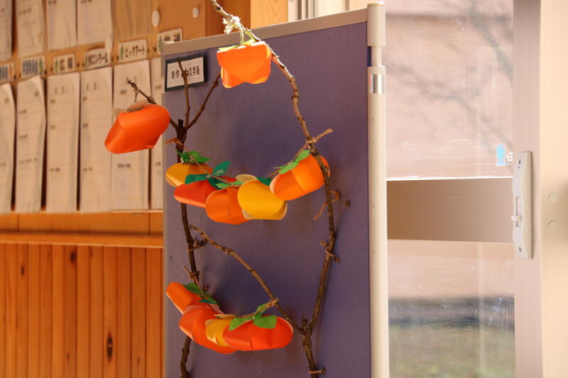 毎月恒例となってきた和久学級の生徒たちによる季節を感じる掲示物ですが、今月は「柿」です。