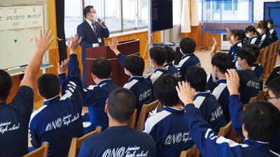 校長からは、「実際の災害は学校にいる時とは限らず、下校途中や休日、深夜、あるいは自分一人で家にいる時に起こるかもしれません。『自分の命を守る』ためにも、日頃から『危機管理』の意識を高めましょう」という話がありました。